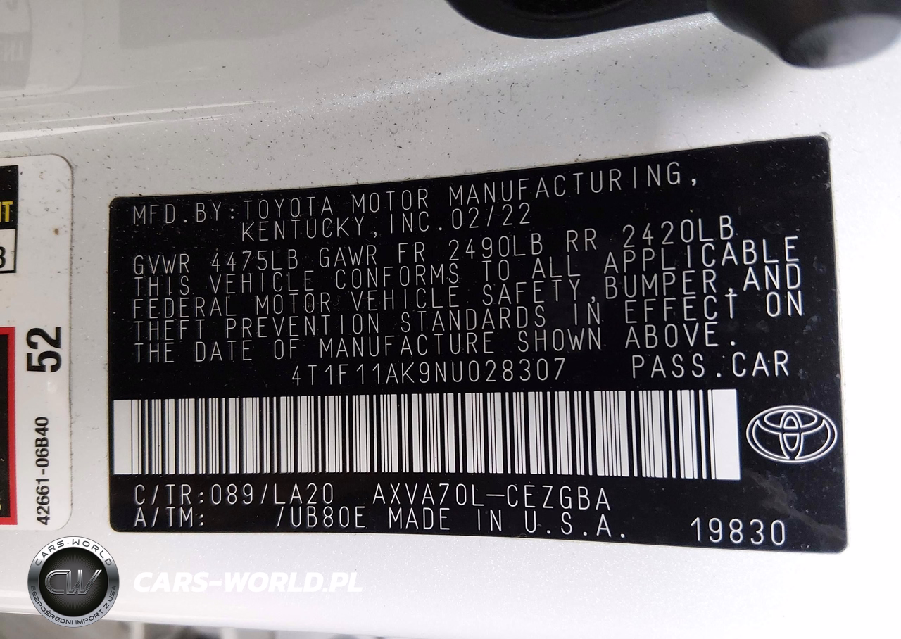 IAAI Nr: I-44757459 VIN: 4T1F11AK9NU028307 Port: Los Angeles, CA