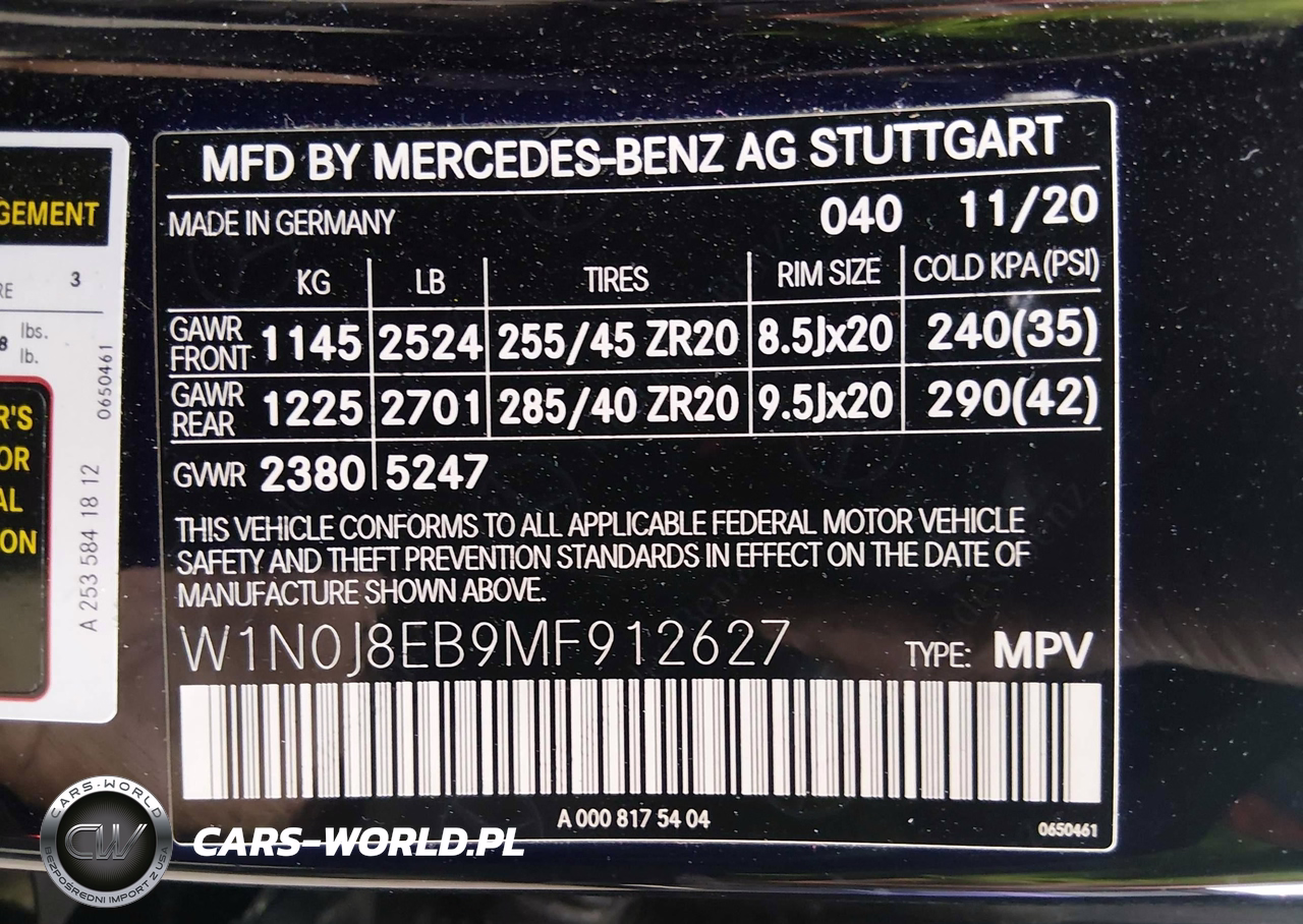 IAAI Nr: I-44757652 VIN: W1N0J8EB9MF912627 Port: Elizabeth, NJ