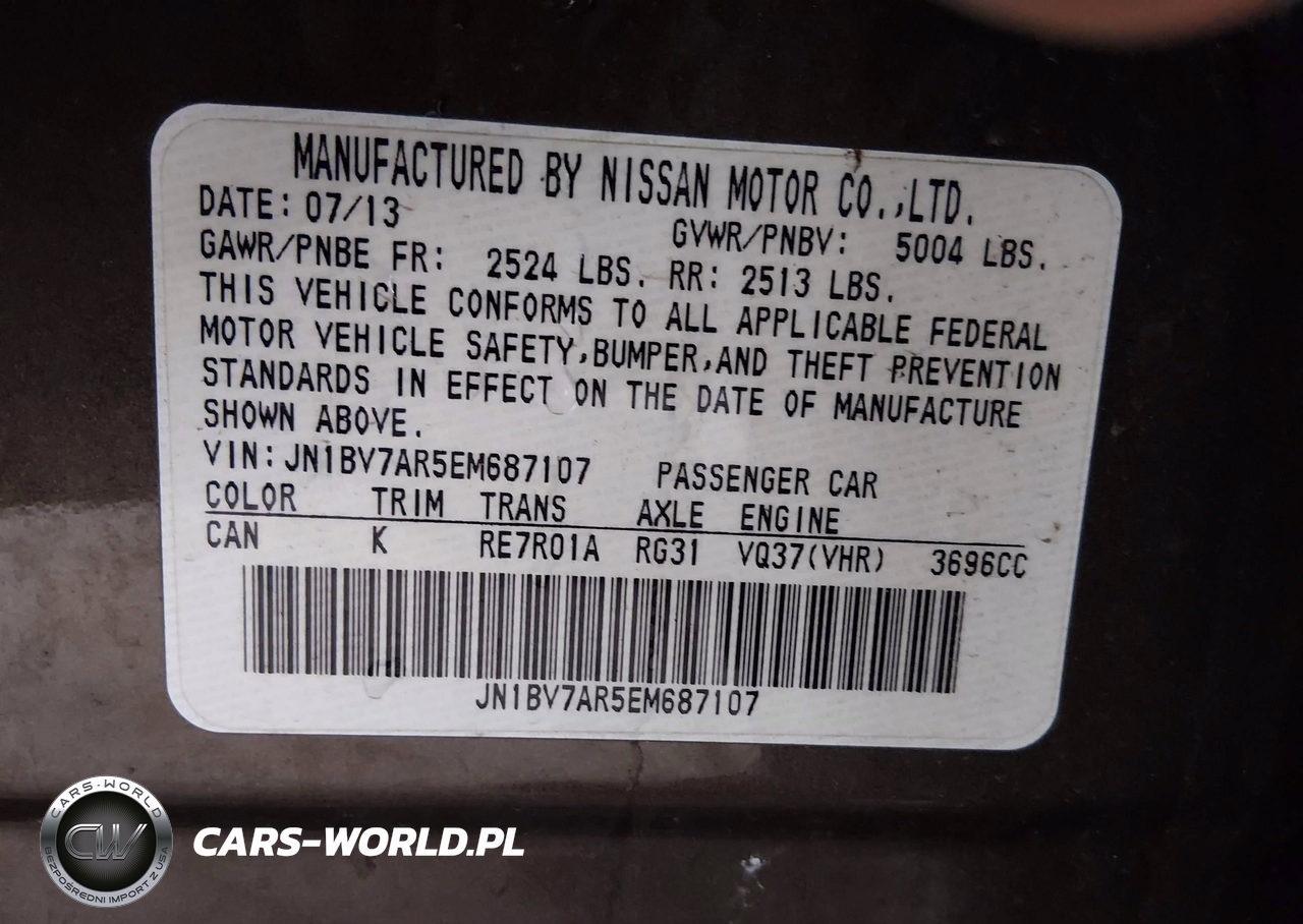 IAAI Nr: I-44758228 VIN: JN1BV7AR5EM687107 Port: Los Angeles, CA