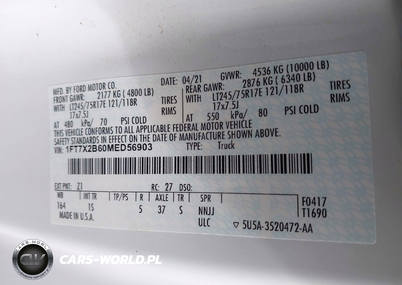 IAAI Nr: I-44758513 VIN: 1FT7X2B60MED56903 Port: Houston, TX