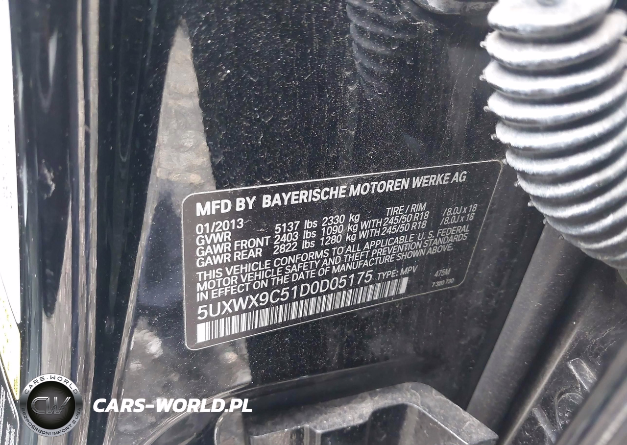 IAAI Nr: I-44759027 VIN: 5UXWX9C51D0D05175 Port: Elizabeth, NJ