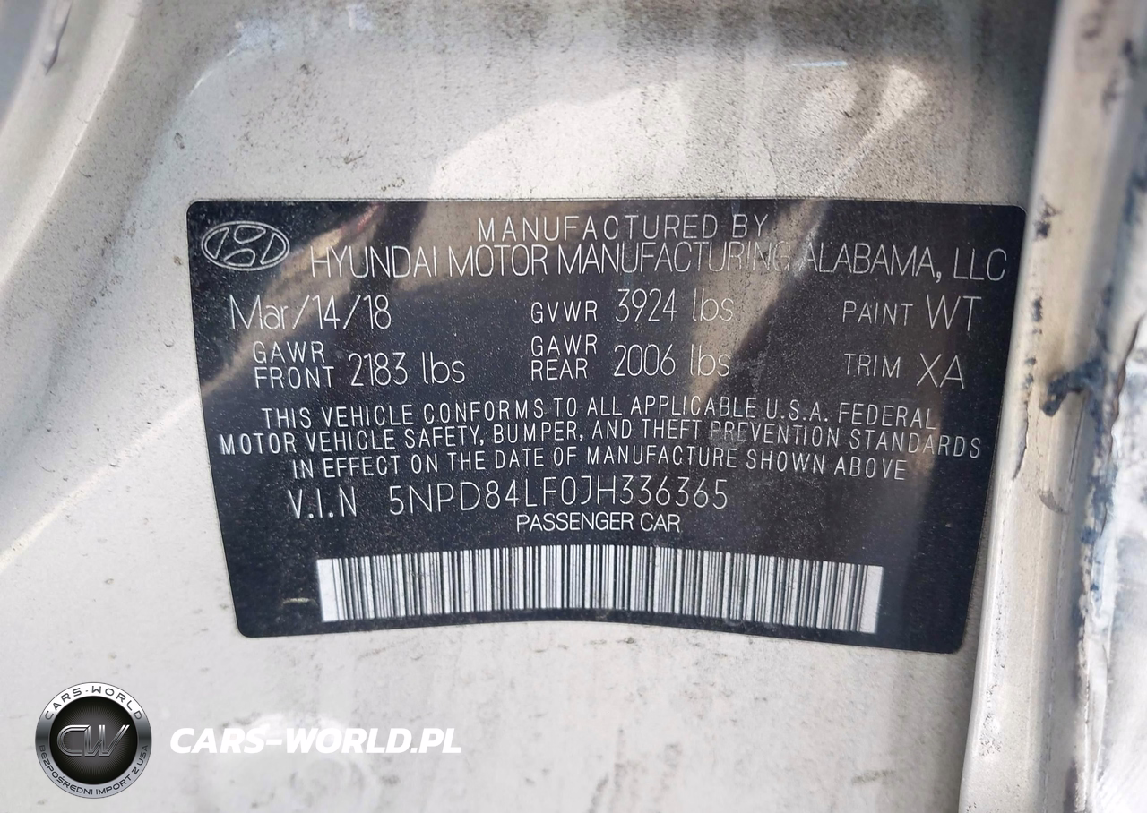 IAAI Nr: I-44759361 VIN: 5NPD84LF0JH336365 Port: Savannah, GA