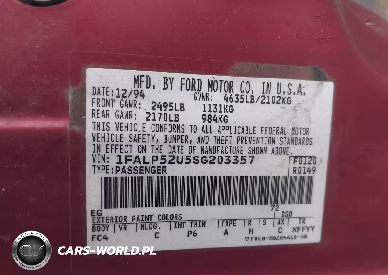 IAAI Nr: I-44761143 VIN: 1FALP52U5SG203357 Port: Los Angeles, CA