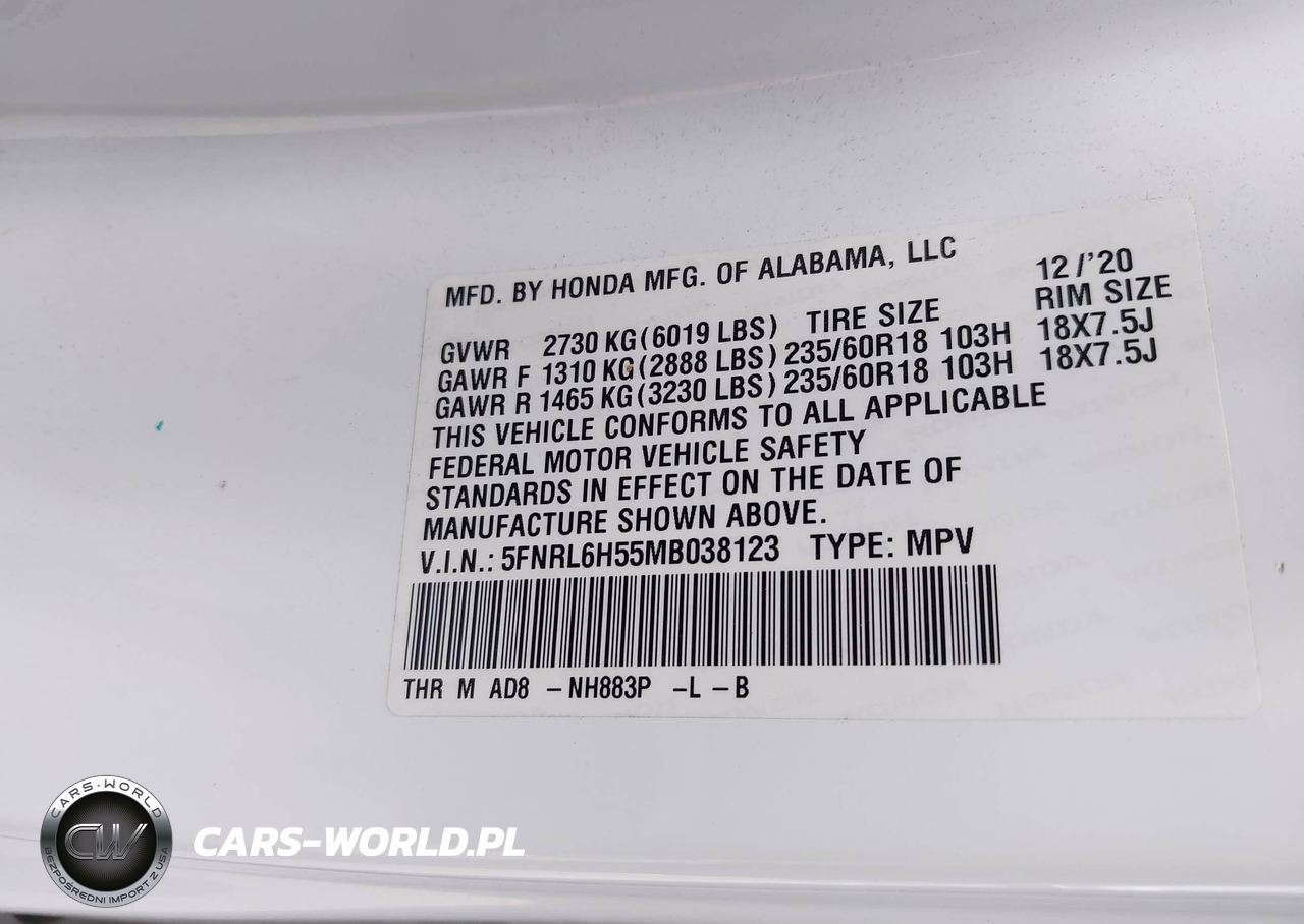 IAAI Nr: I-44761183 VIN: 5FNRL6H55MB038123 Port: Houston, TX