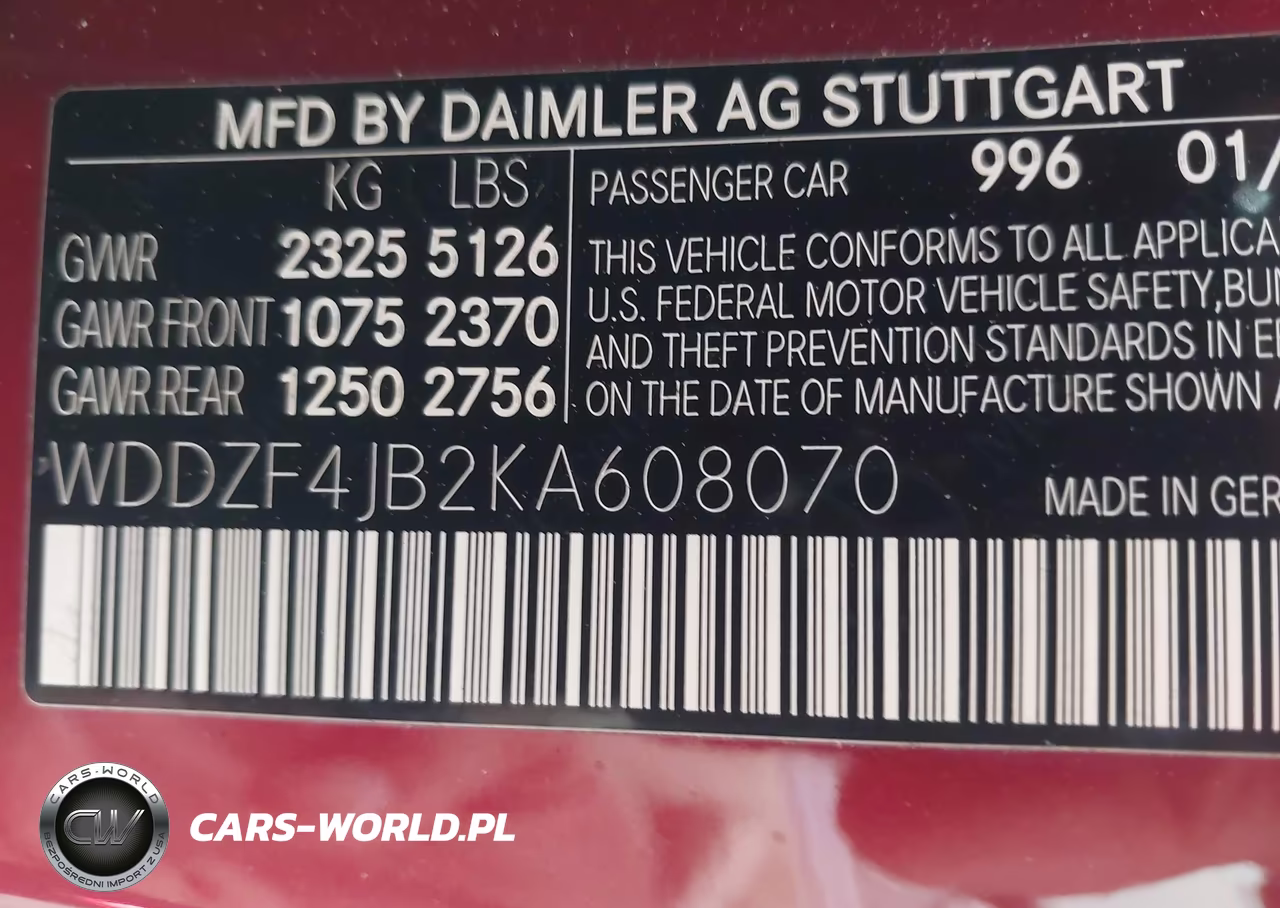 IAAI Nr: I-44761476 VIN: WDDZF4JB2KA608070 Port: Los Angeles, CA