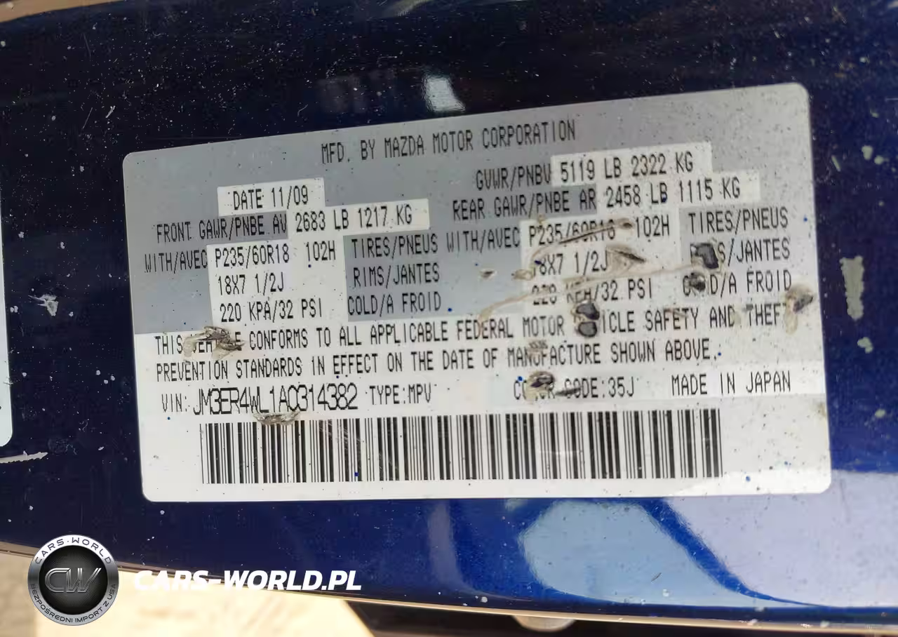 IAAI Nr: I-44761989 VIN: JM3ER4WL1A0314382 Port: Elizabeth, NJ