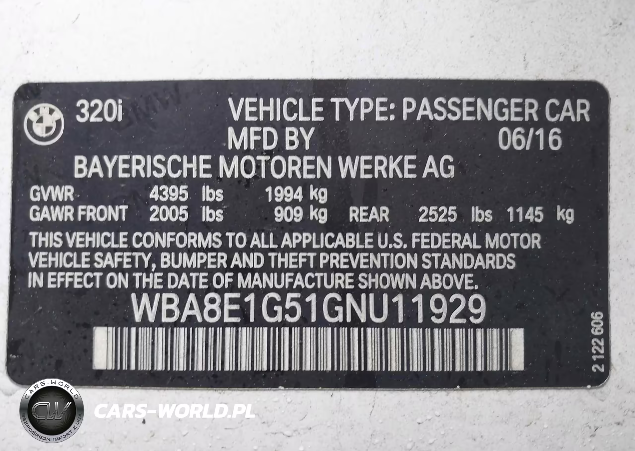 IAAI Nr: I-44762360 VIN: WBA8E1G51GNU11929 Port: Elizabeth, NJ