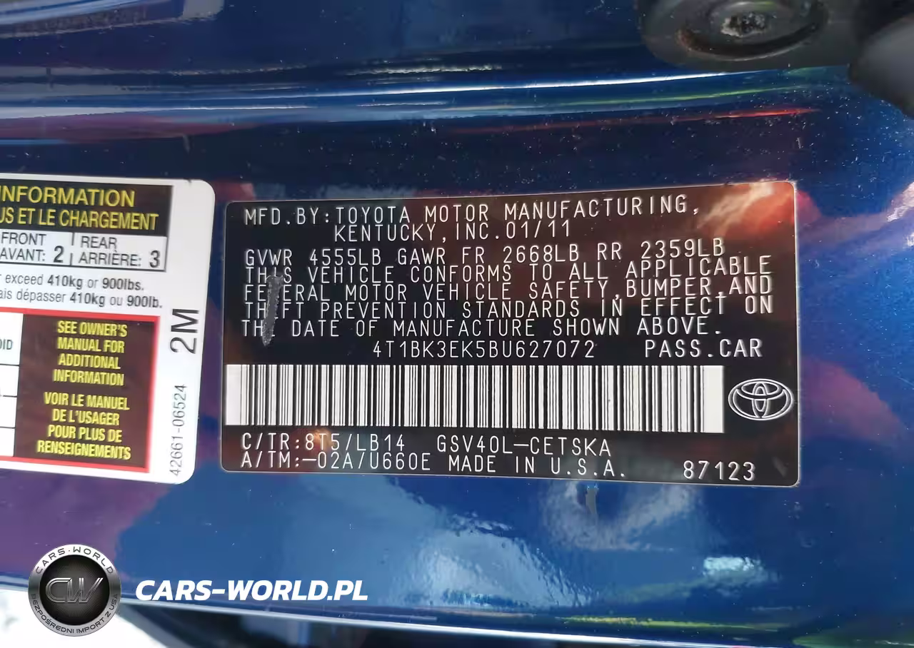 IAAI Nr: I-44762713 VIN: 4T1BK3EK5BU627072 Port: Elizabeth, NJ