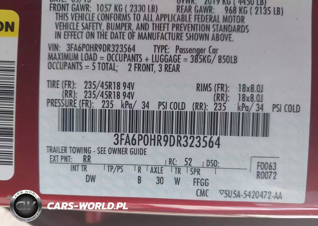 IAAI Nr: I-44763098 VIN: 3FA6P0HR9DR323564 Port: Houston, TX