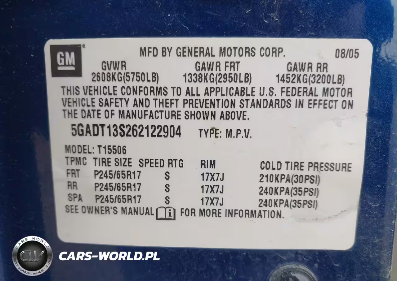 IAAI Nr: I-44763111 VIN: 5GADT13S262122904 Port: Indianapolis, IN