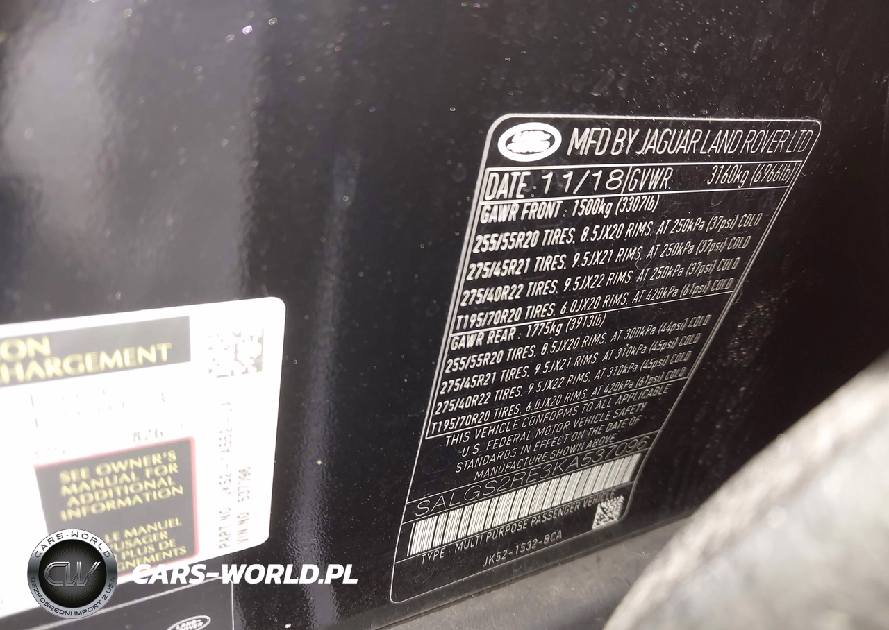 IAAI Nr: I-44763878 VIN: SALGS2RE3KA537096 Port: Los Angeles, CA