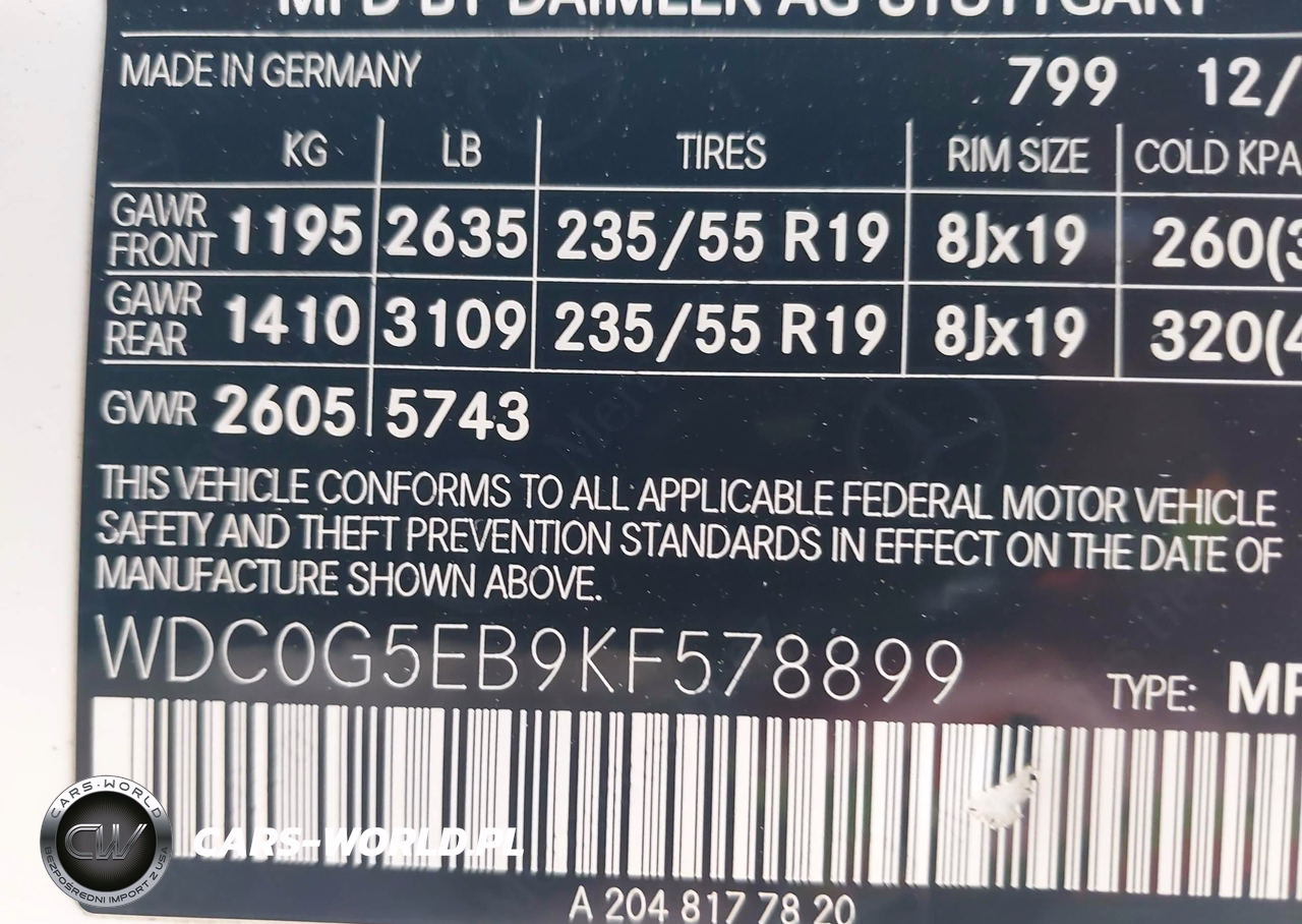 IAAI Nr: I-44764280 VIN: WDC0G5EB9KF578899 Port: Los Angeles, CA
