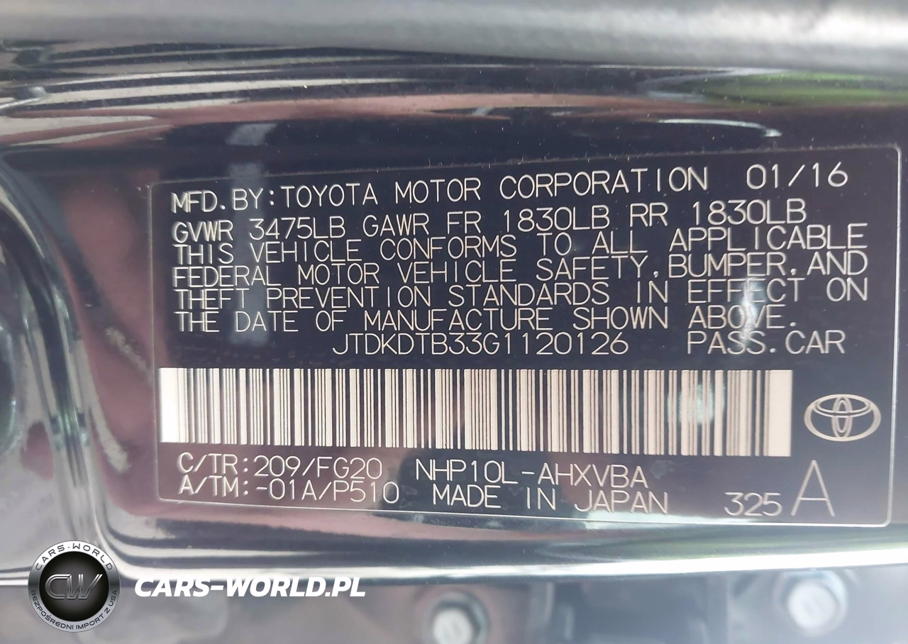 IAAI Nr: I-44764408 VIN: JTDKDTB33G1120126 Port: Los Angeles, CA