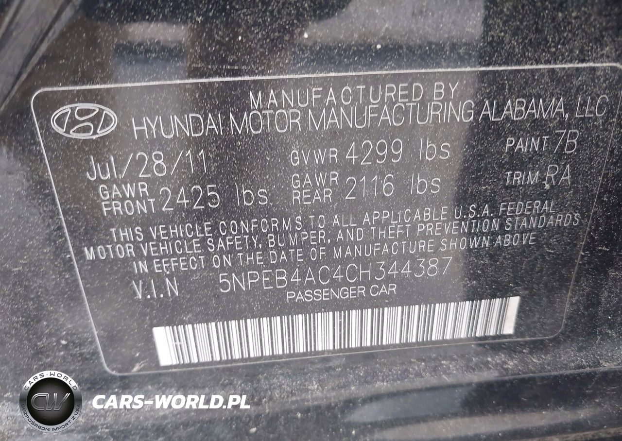 IAAI Nr: I-44764613 VIN: 5NPEB4AC4CH344387 Port: Savannah, GA