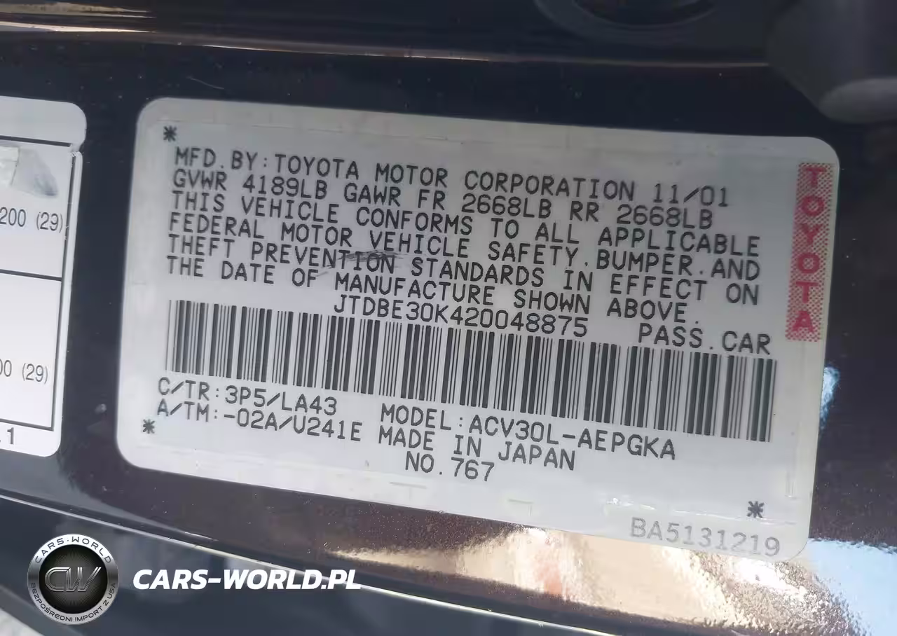 IAAI Nr: I-44764937 VIN: JTDBE30K420048875 Port: Los Angeles, CA
