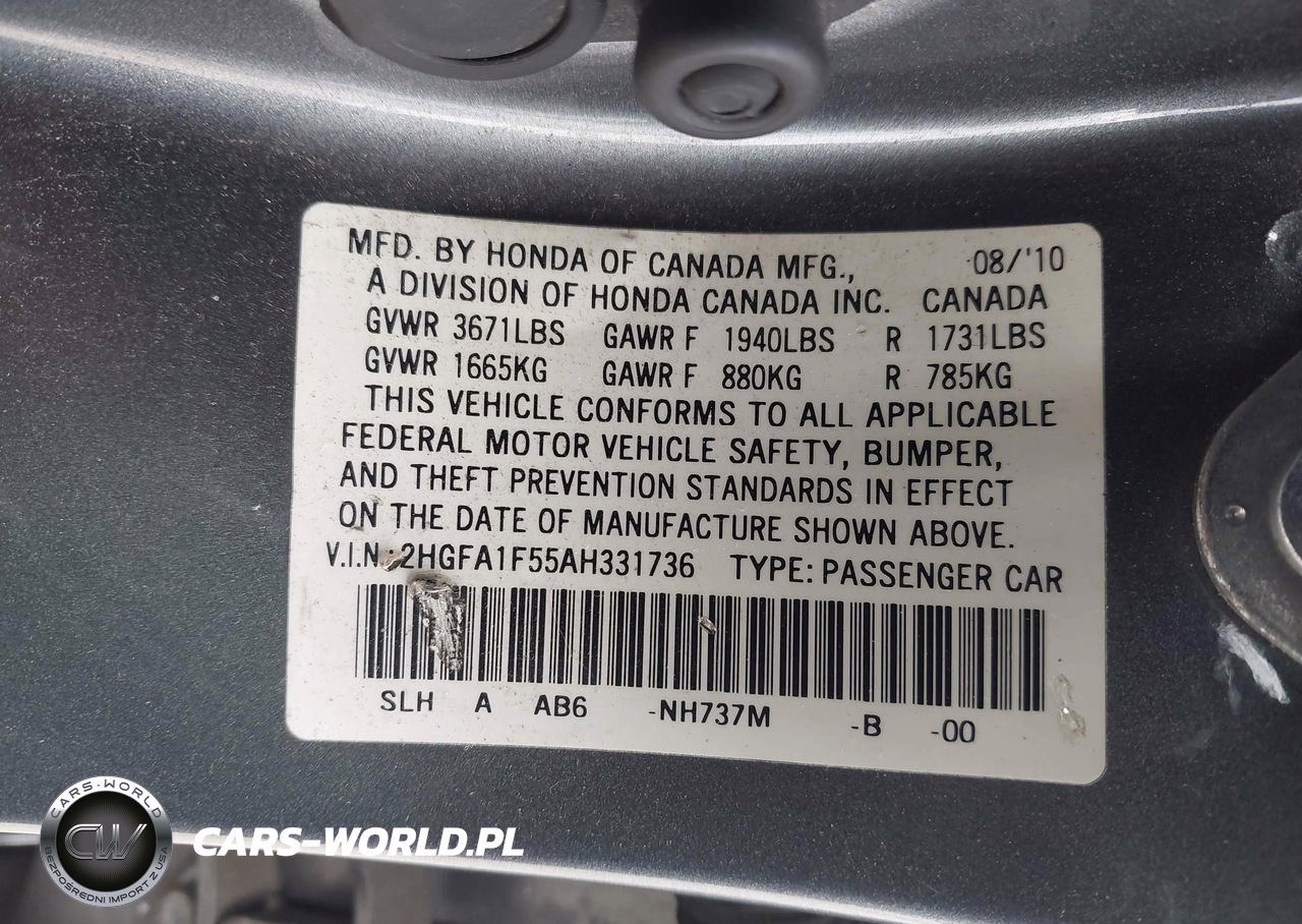 IAAI Nr: I-44765016 VIN: 2HGFA1F55AH331736 Port: Los Angeles, CA