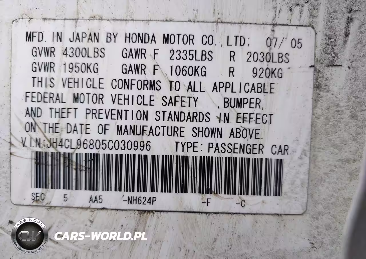 IAAI Nr: I-44766195 VIN: JH4CL96805C030996 Port: Elizabeth, NJ