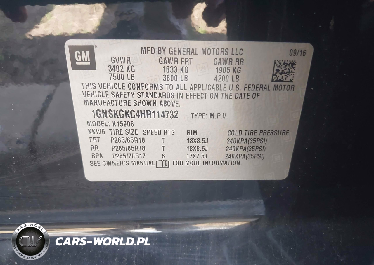 IAAI Nr: I-44767079 VIN: 1GNSKGKC4HR114732 Port: Elizabeth, NJ
