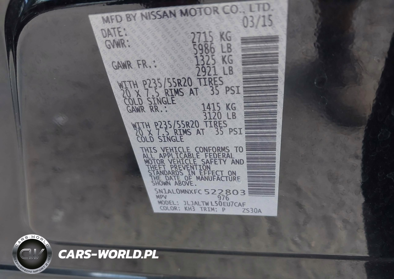IAAI Nr: I-44767103 VIN: 5N1AL0MNXFC522803 Port: Savannah, GA