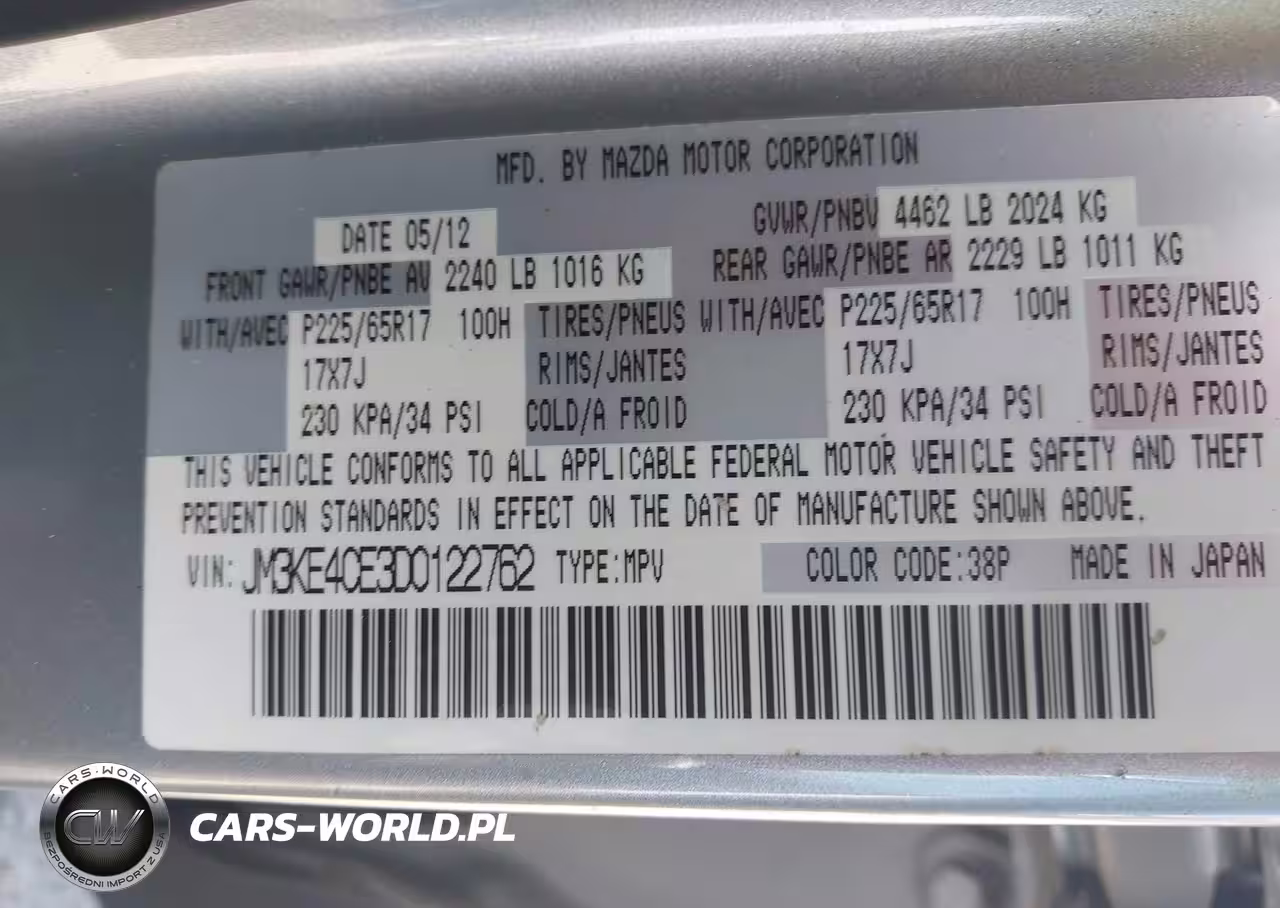 IAAI Nr: I-44767433 VIN: JM3KE4CE3D0122762 Port: Savannah, GA