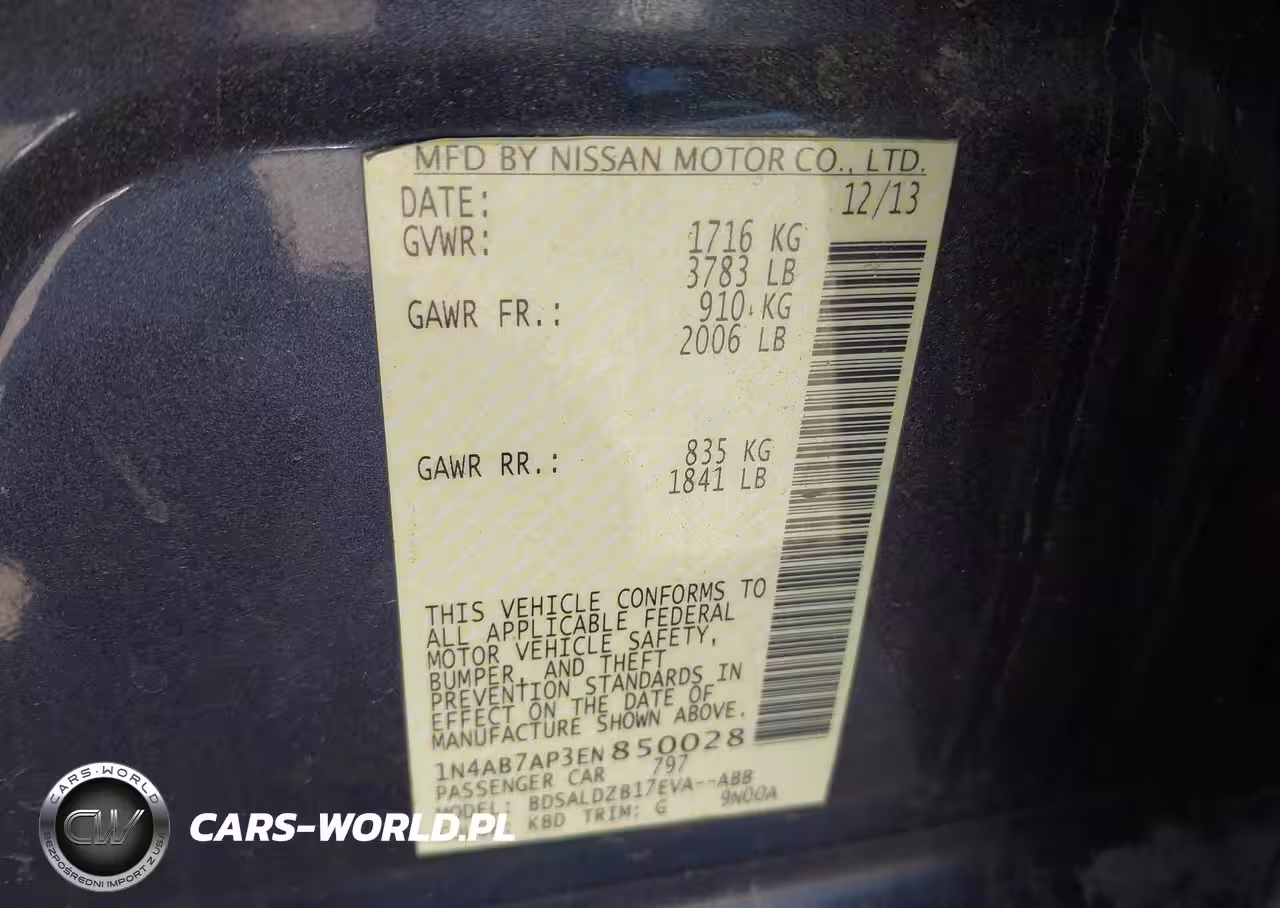 IAAI Nr: I-44767622 VIN: 1N4AB7AP3EN850028 Port: Los Angeles, CA
