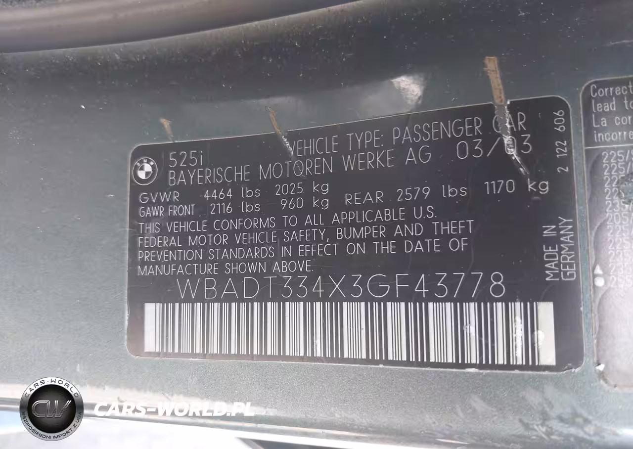 IAAI Nr: I-44767690 VIN: WBADT334X3GF43778 Port: Los Angeles, CA