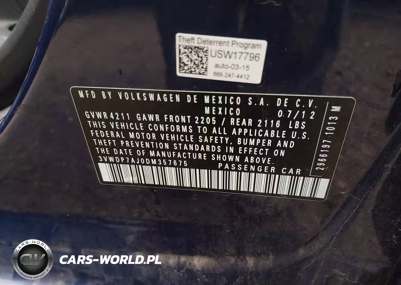 IAAI Nr: I-44767722 VIN: 3VWDP7AJ0DM357675 Port: Indianapolis, IN