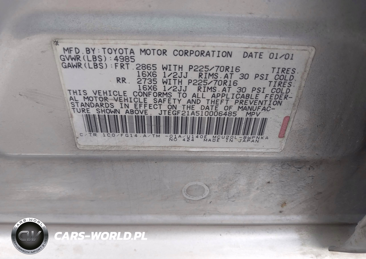 IAAI Nr: I-44767755 VIN: JTEGF21A510006485 Port: Houston, TX