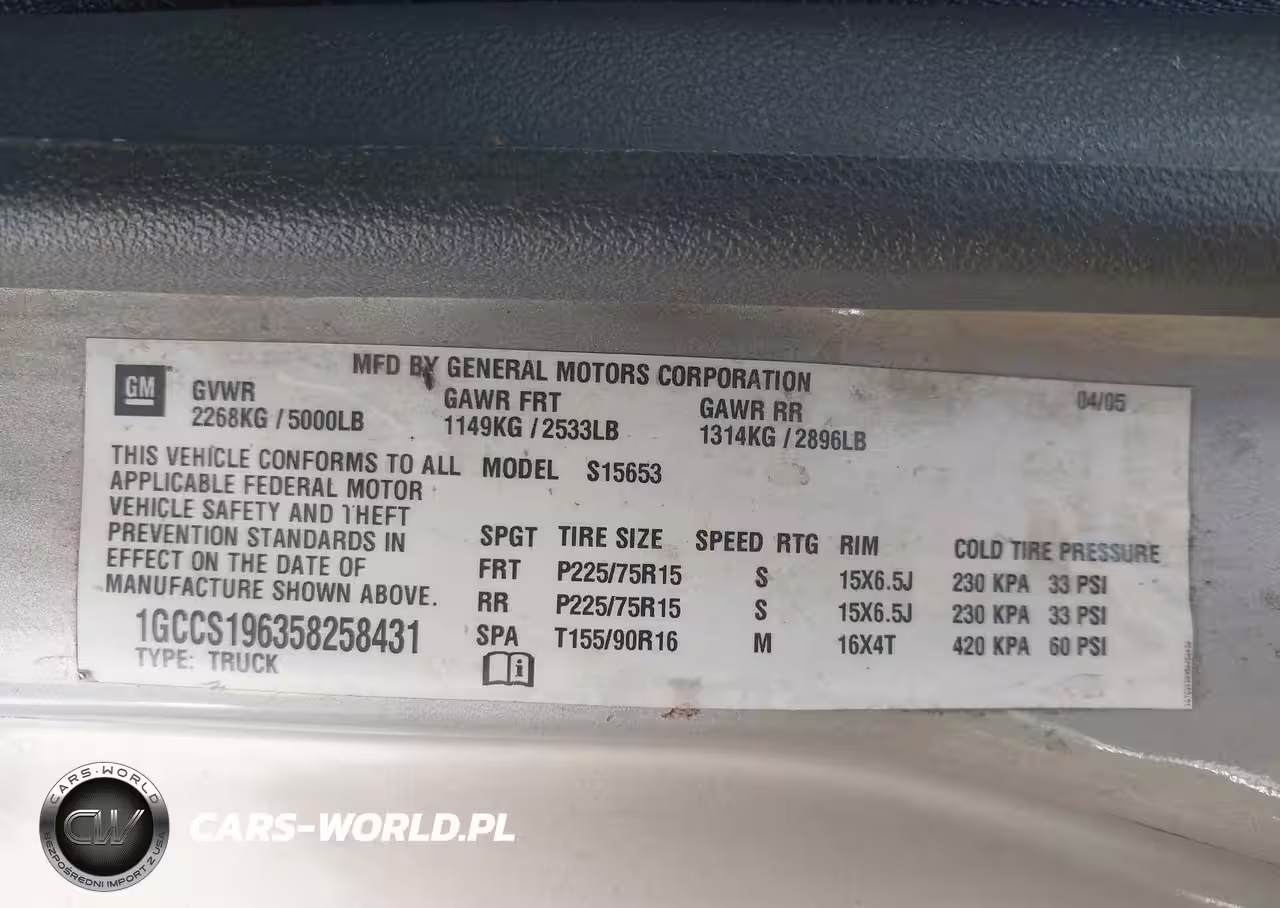 IAAI Nr: I-44768453 VIN: 1GCCS196358258431 Port: Los Angeles, CA