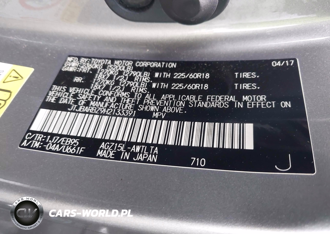 IAAI Nr: I-44768627 VIN: JTJBARBZ9H2133391 Port: Elizabeth, NJ