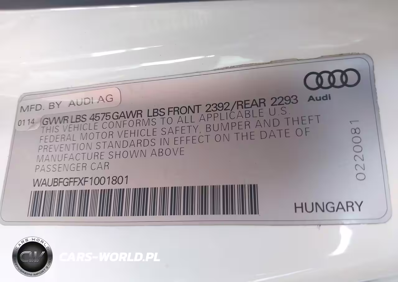IAAI Nr: I-44768795 VIN: WAUBFGFFXF1001801 Port: Los Angeles, CA