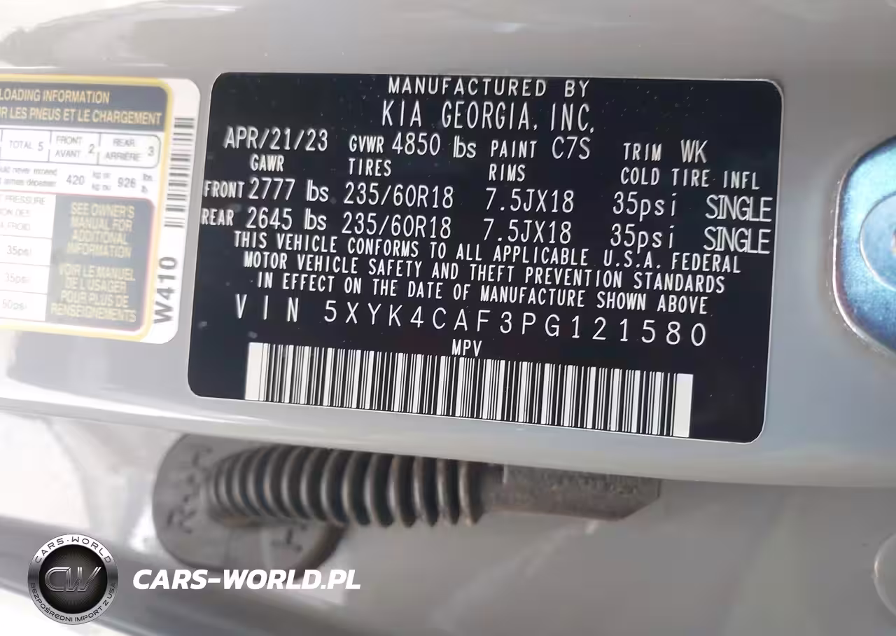 IAAI Nr: I-44768978 VIN: 5XYK4CAF3PG121580 Port: Los Angeles, CA