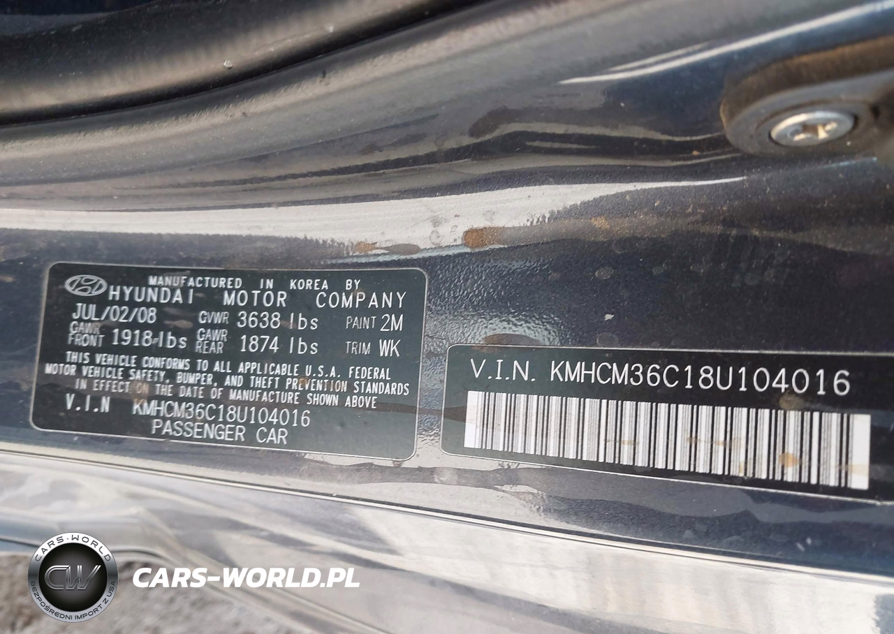 IAAI Nr: I-44769444 VIN: KMHCM36C18U104016 Port: Los Angeles, CA
