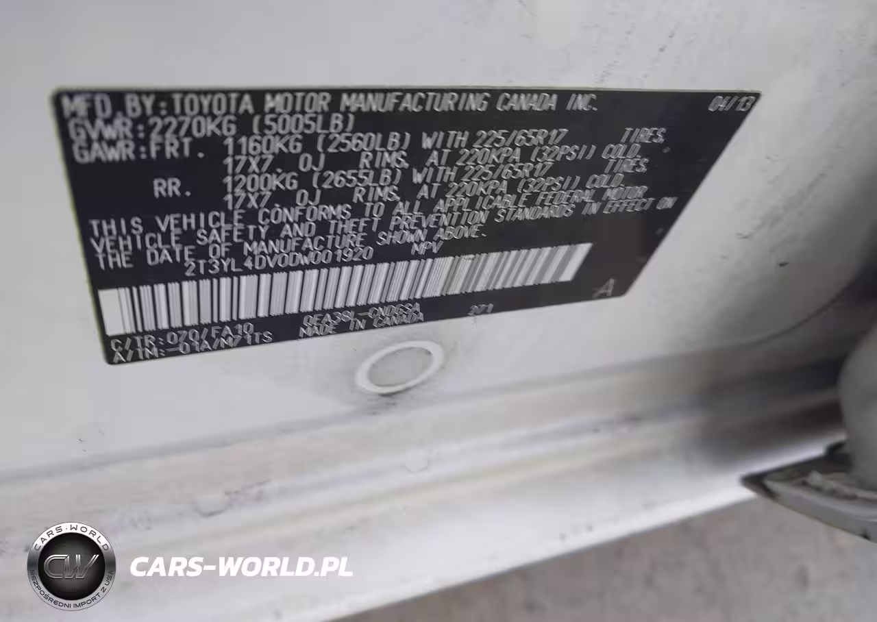 IAAI Nr: I-44769496 VIN: 2T3YL4DV0DW001920 Port: Los Angeles, CA