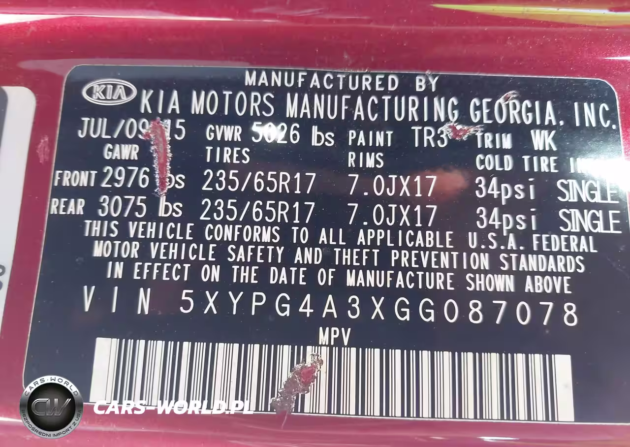 IAAI Nr: I-44769598 VIN: 5XYPG4A3XGG087078 Port: Savannah, GA