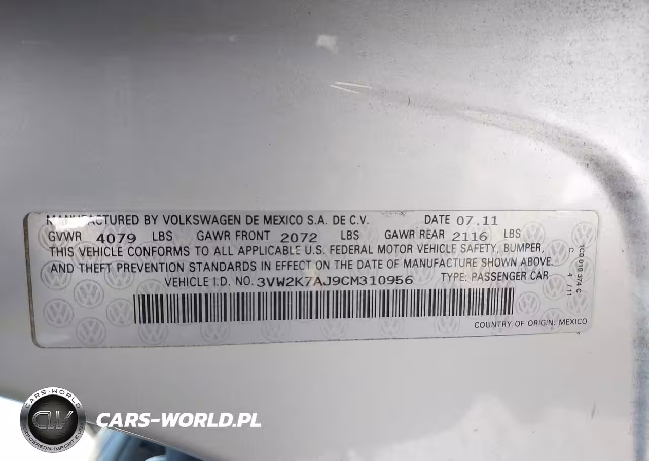 IAAI Nr: I-44769628 VIN: 3VW2K7AJ9CM310956 Port: Los Angeles, CA