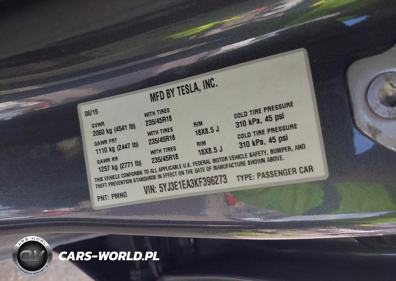 Główne zdjęcie 2019 Tesla Model 3 Long Range-Mid Range-Standard Range-Standard Range Plus