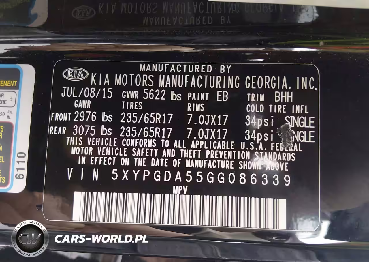 IAAI Nr: I-44770333 VIN: 5XYPGDA55GG086339 Port: Elizabeth, NJ