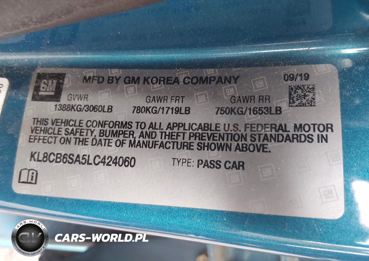 IAAI Nr: I-44771014 VIN: KL8CB6SA5LC424060 Port: Elizabeth, NJ