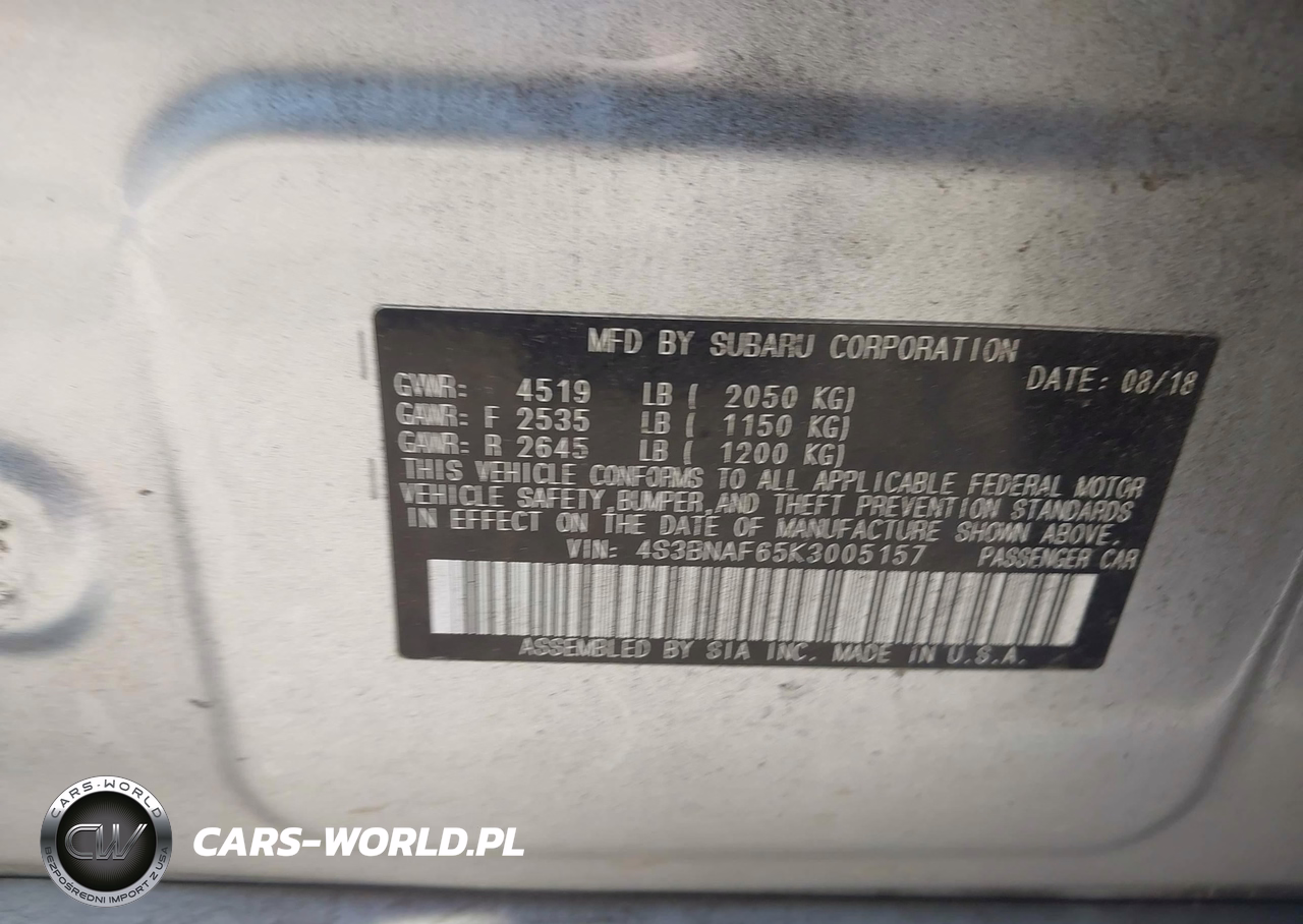 IAAI Nr: I-44771020 VIN: 4S3BNAF65K3005157 Port: Houston, TX