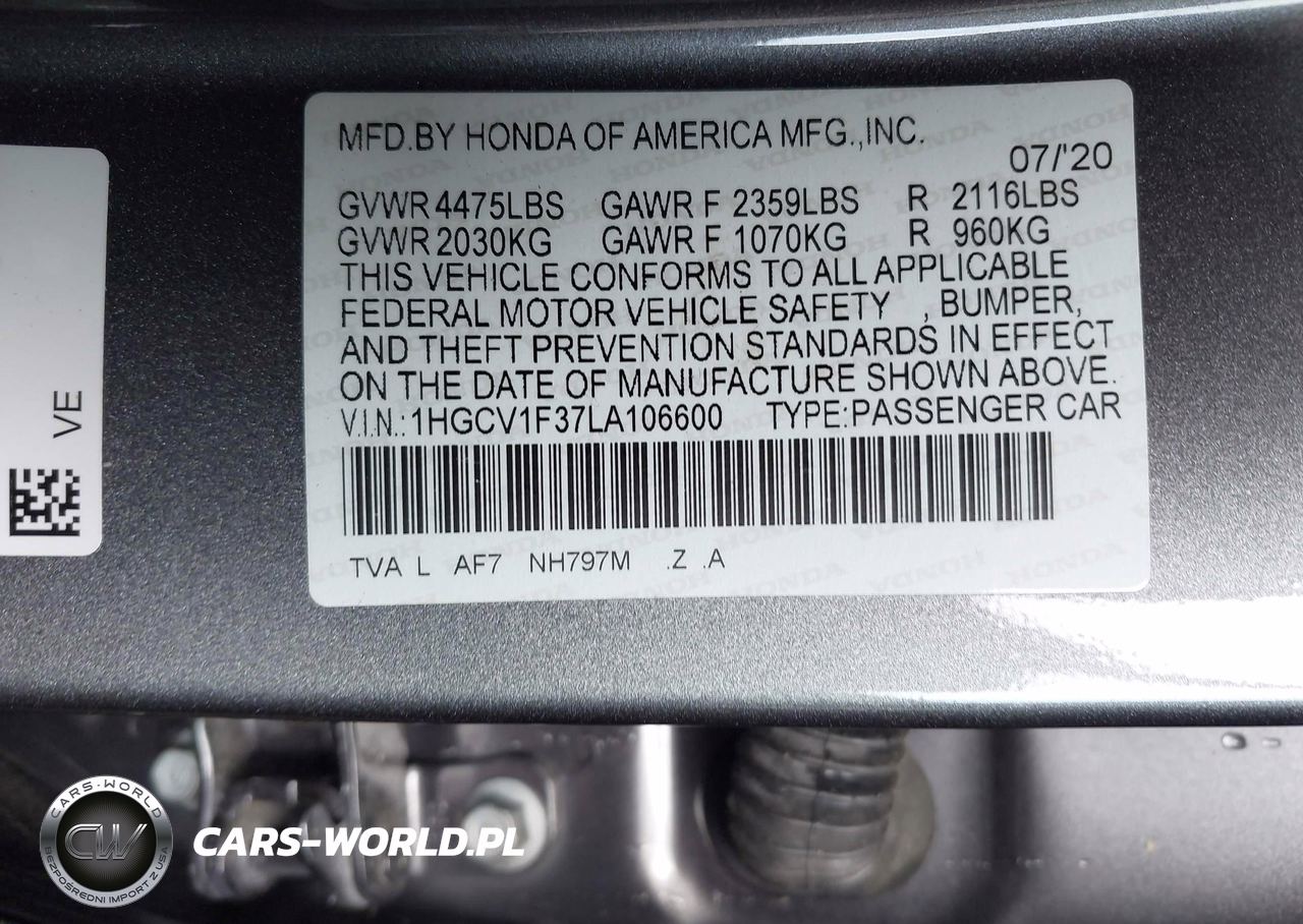 IAAI Nr: I-44771052 VIN: 1HGCV1F37LA106600 Port: Elizabeth, NJ