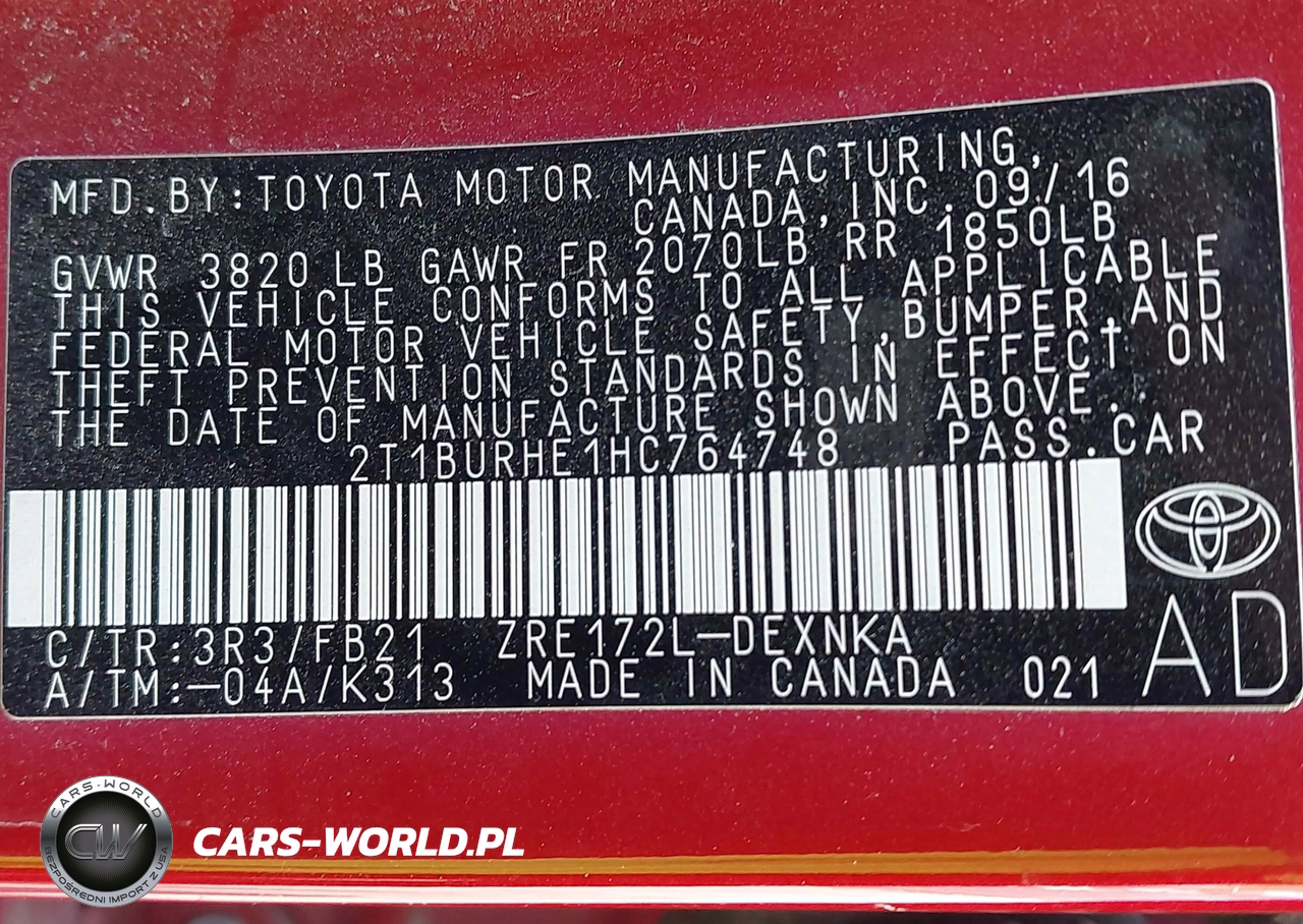 IAAI Nr: I-44771096 VIN: 2T1BURHE1HC764748 Port: Savannah, GA