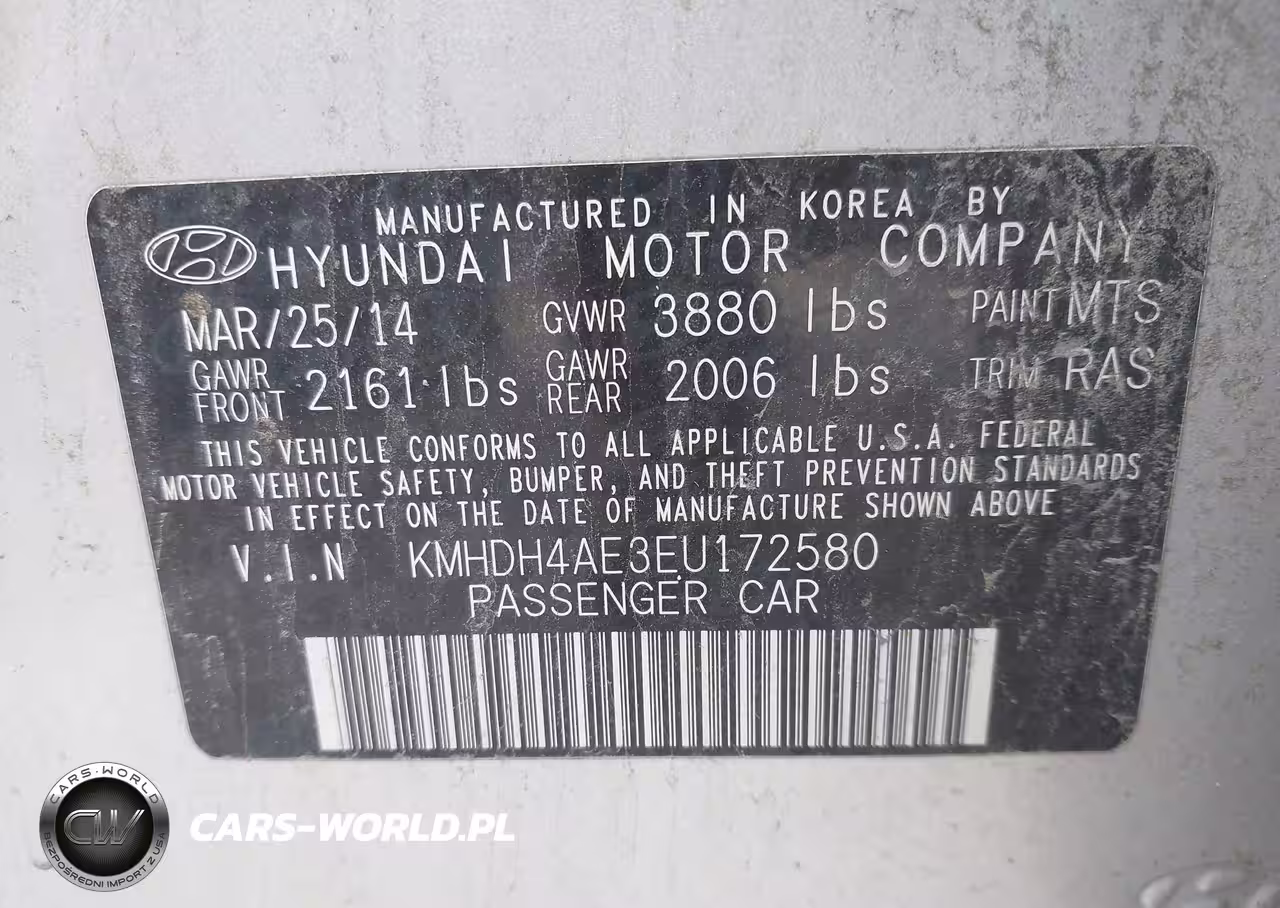 IAAI Nr: I-44771866 VIN: KMHDH4AE3EU172580 Port: Indianapolis, IN