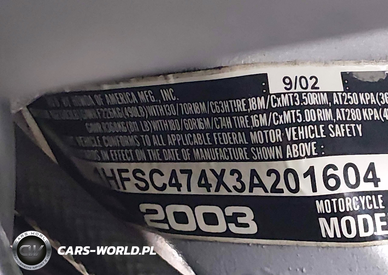 IAAI Nr: I-44772202 VIN: 1HFSC474X3A201604 Port: Elizabeth, NJ