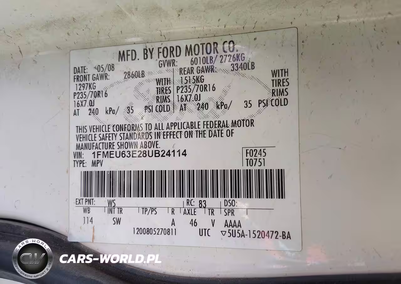 IAAI Nr: I-44772337 VIN: 1FMEU63E28UB24114 Port: Los Angeles, CA