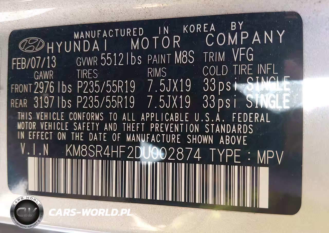 IAAI Nr: I-44772351 VIN: KM8SR4HF2DU002874 Port: Savannah, GA