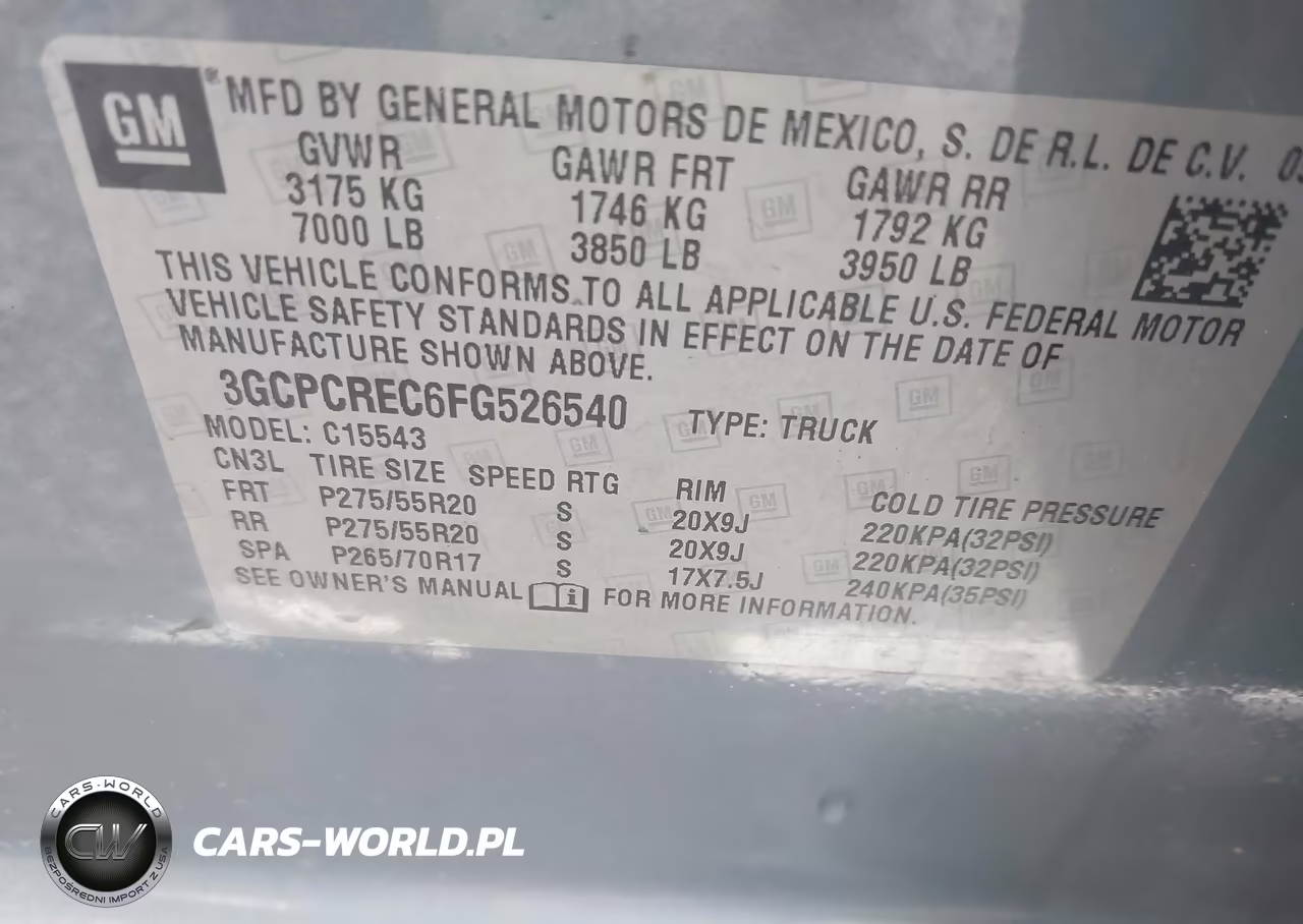 IAAI Nr: I-44772739 VIN: 3GCPCREC6FG526540 Port: Savannah, GA