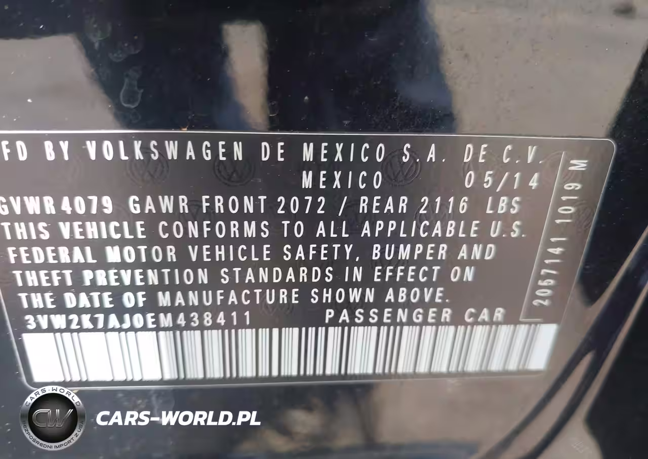 IAAI Nr: I-44772942 VIN: 3VW2K7AJ0EM438411 Port: Savannah, GA