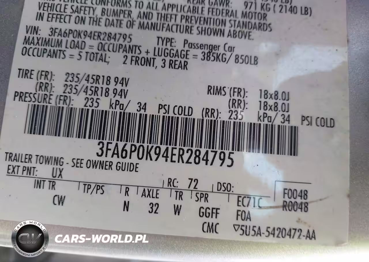 IAAI Nr: I-44773426 VIN: 3FA6P0K94ER284795 Port: Savannah, GA