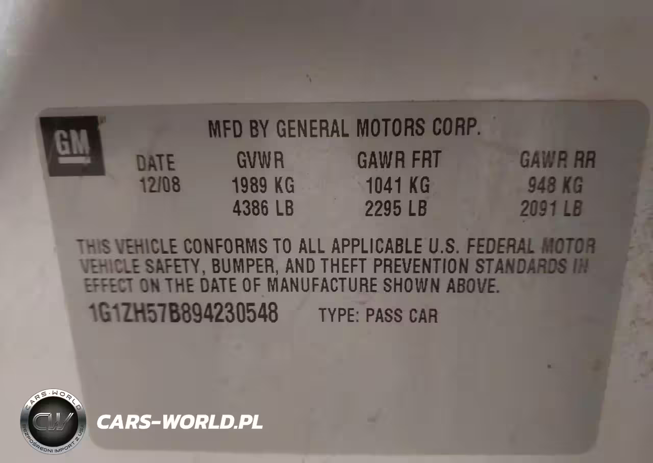 IAAI Nr: I-44774076 VIN: 1G1ZH57B894230548 Port: Indianapolis, IN